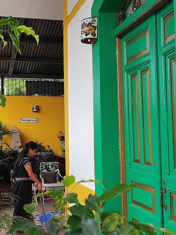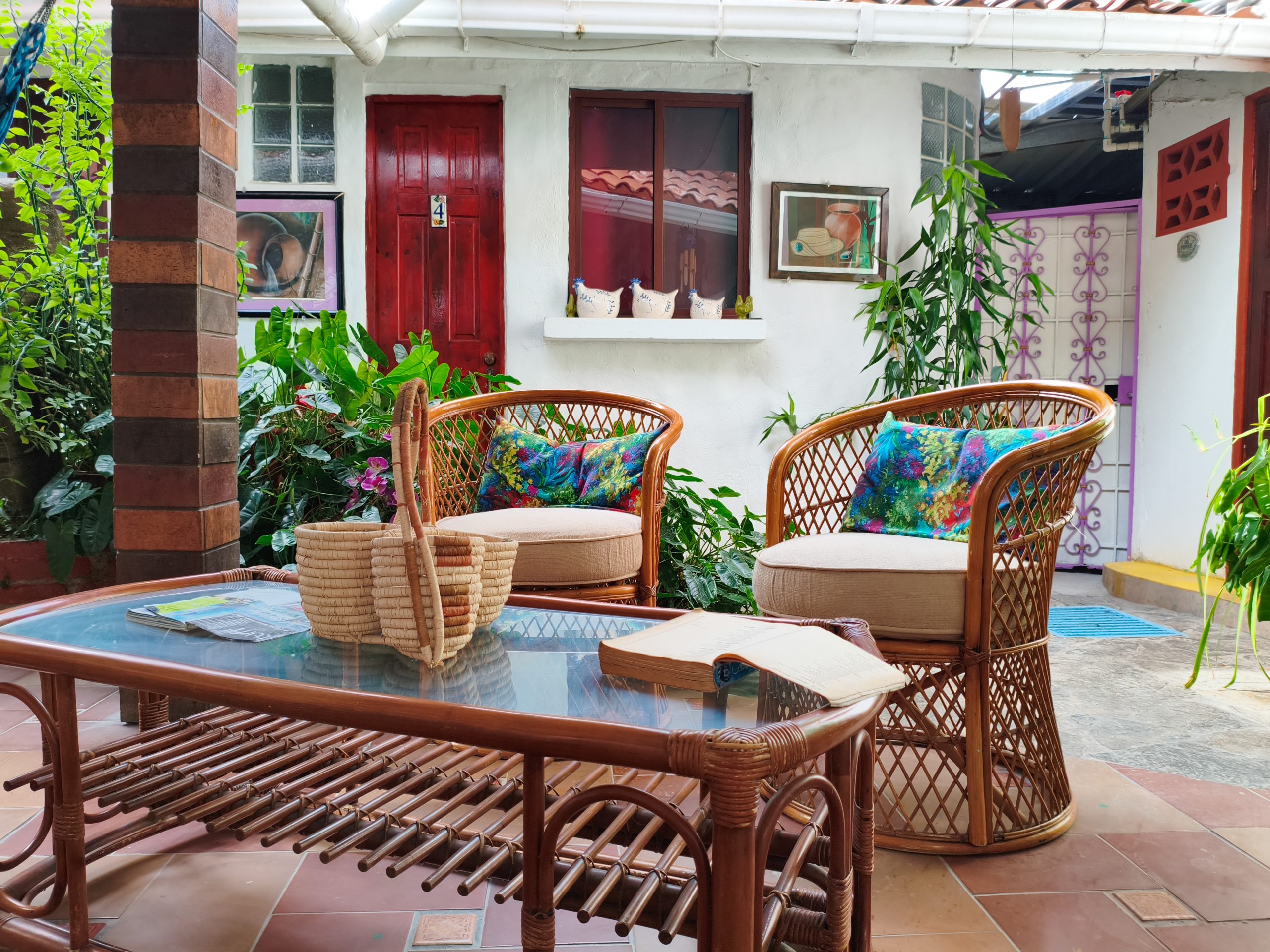 – Acceso al patio interno, a nuestra Sala Colonial y terraza comunal al aire libre.