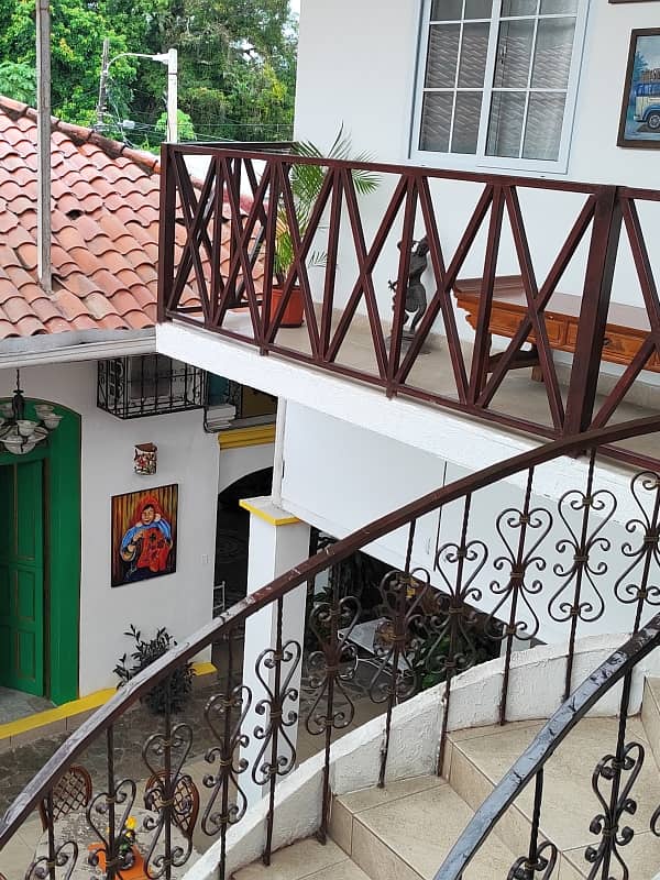 – Disposición de todas las áreas sociales, Sala Colonial y el patio interno con jardín.