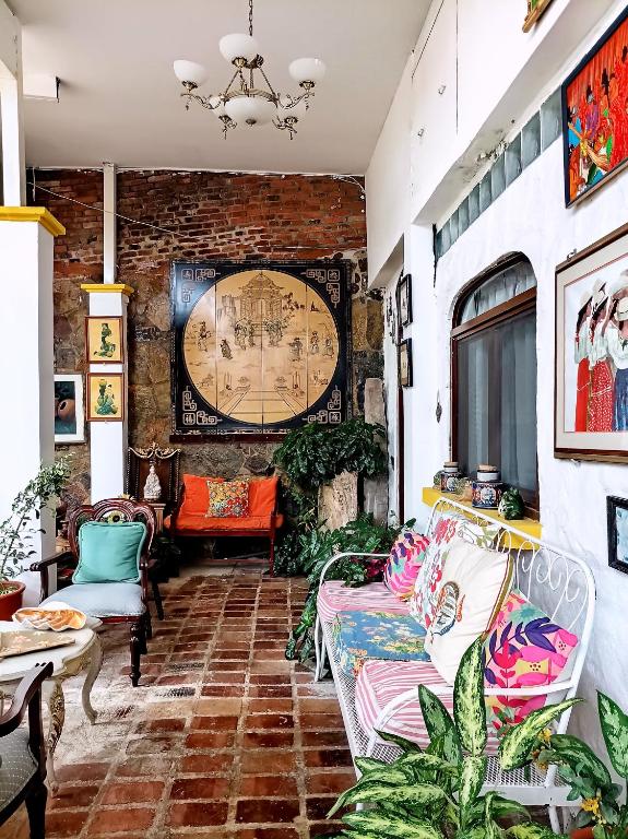 – Vistas a nuestra Sala Colonial, las áreas sociales y el patio interno con terraza.